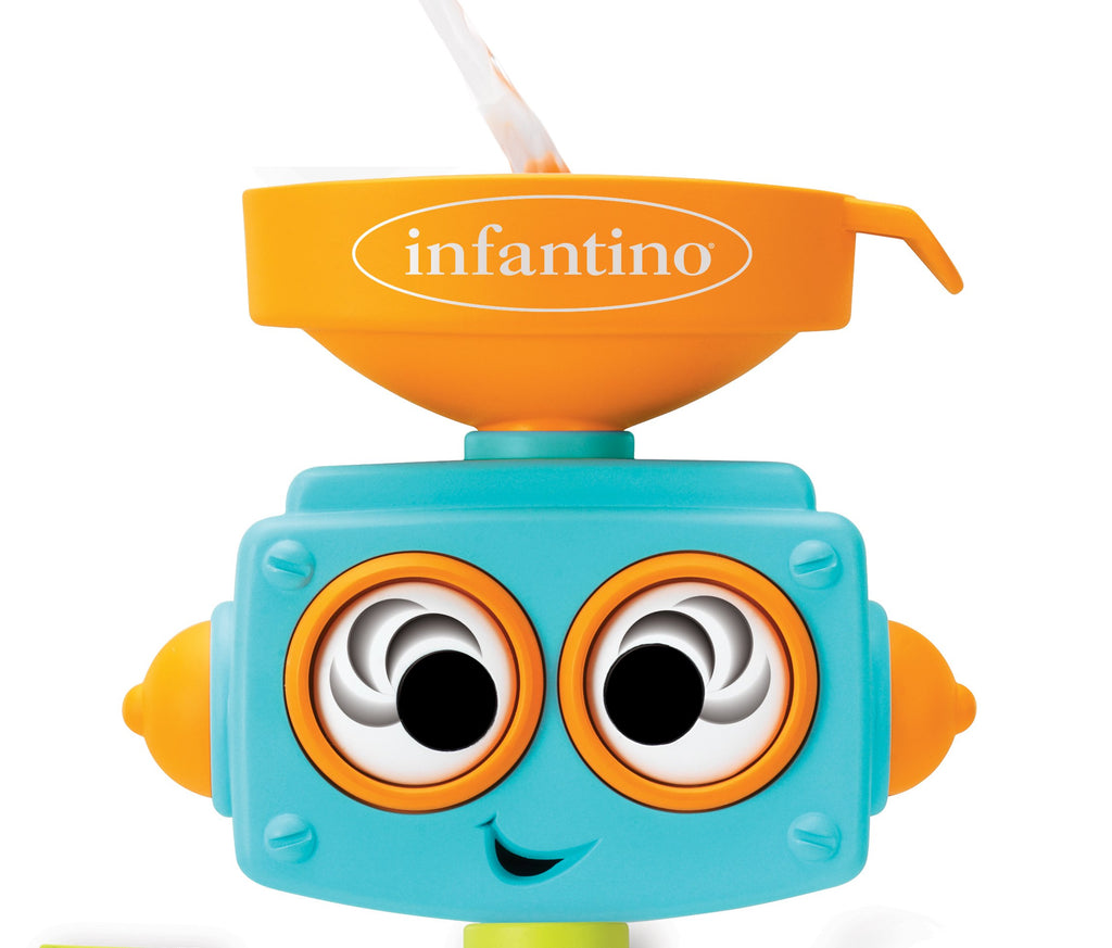 - Gieße das Wasser in den Trichter über dem Kopf des Roboters und er rollt mit den Augen.