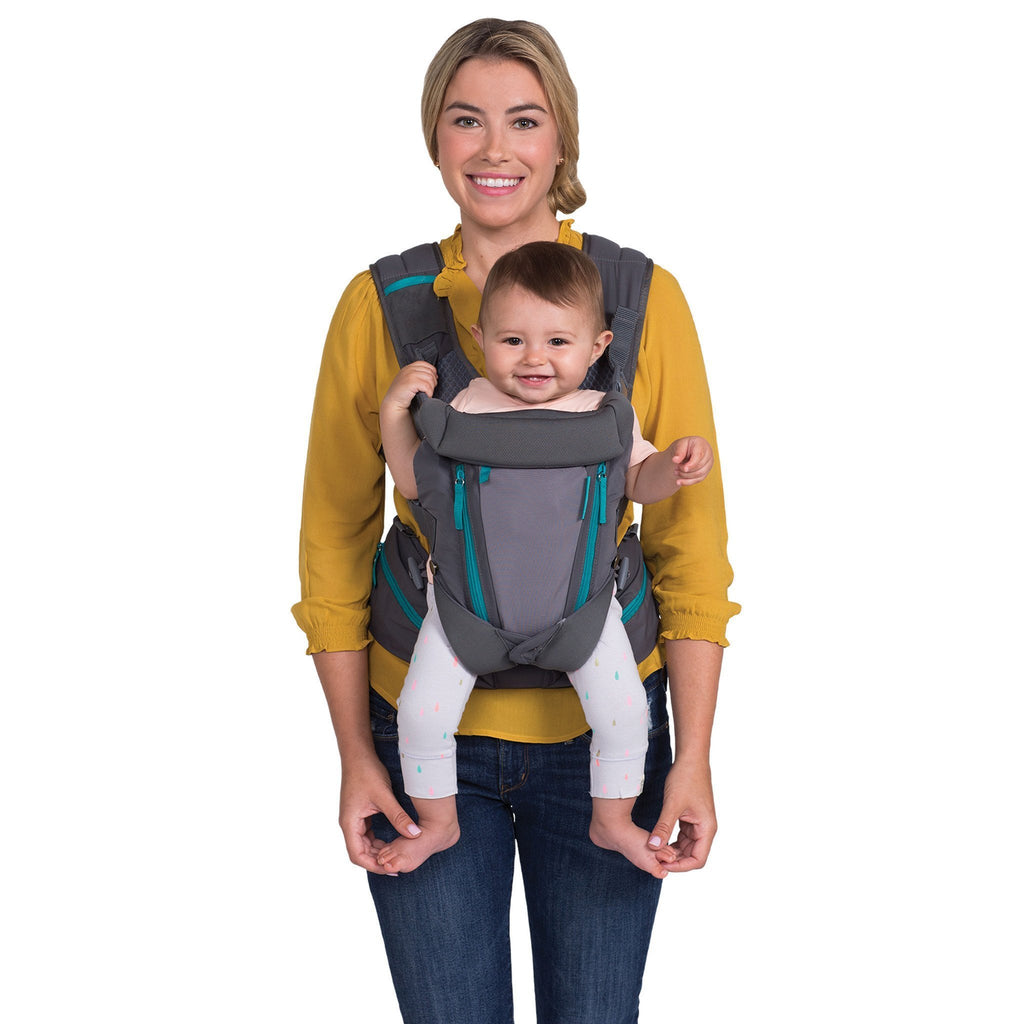 Die Carry On Multi-Pocket Babytrage verfügt über sechs separate Taschen sowie einen verstellbaren Sitz, der für Neugeborene eng zusammengezogen sowie für ältere Babys und Kleinkinder erweitert werden kann - und somit ergonomische Unterstützung in allen Phasen bietet. Gepolsterte Schultergurte und ein unterstützender Hüftgurt verteilen das Gewicht gleichmäßig für ein angenehmes Tragegefühl. Zu den praktischen Taschen gehören eine leicht zugängliche Schnullertasche am Schultergurt, Eingriffstaschen für Telefon und Schlüssel an der Hüfte und Fronttaschen für weiche Sachen wie Windeln, Tücher oder einen Ersatz-Strampler. Das clevere Stretch-Forward-Design sorgt dafür, dass sich gefüllte Taschen immer nach außen und nicht zum Kind hin richten. Ein atmungsaktives Mesh-Panel hält die Luftzirkulation zwischen Eltern und Kind aufrecht und hält dich und dein Baby bei jedem Wetter angenehm kühl.