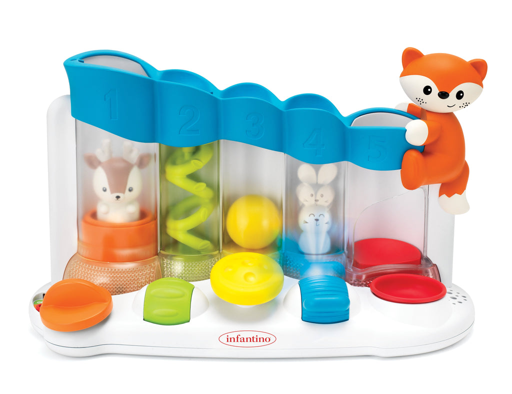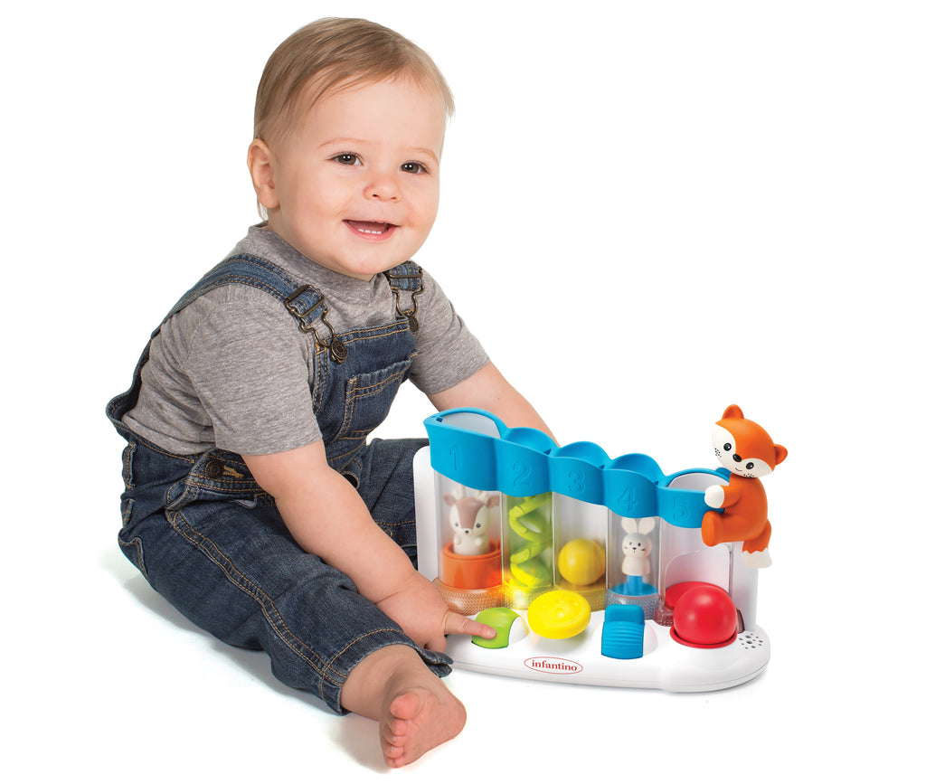 Mit dem Ball Drop Piano wird Babys Wahrnehmung gefördert. Dein Kind kann durch Drücken der bunten Tasten verschiedene Klänge erzeugen.