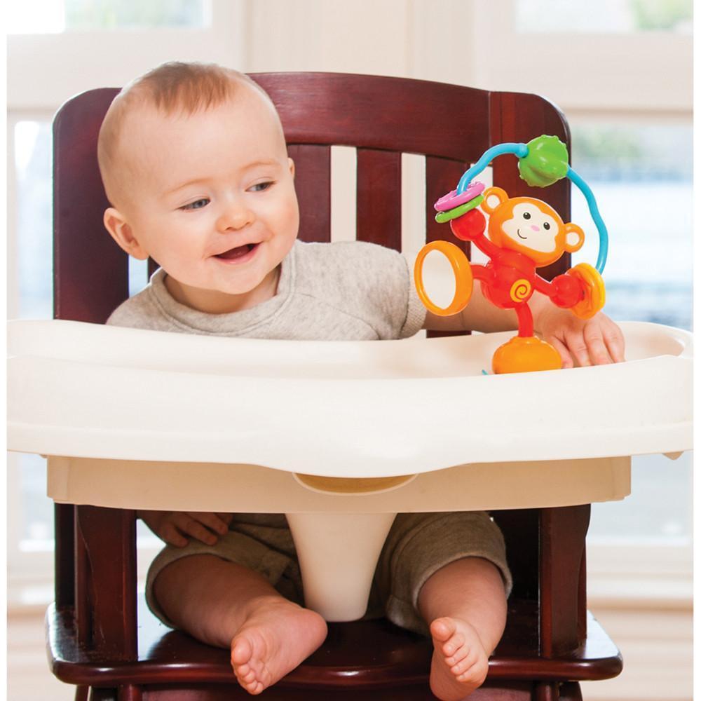 Der Stick & Spin Hochstuhl Freund lässt sich problemlos auf den meisten glatten Oberflächen befestigen. Dieser drehende, rotierende Freund steckt voller lustiger Aktivitäten, darunter Perlen, ein Spinner und ein Peek-a-Boo-Fußspiegel. Perfekt während des Essens oder zum Spielen!